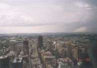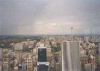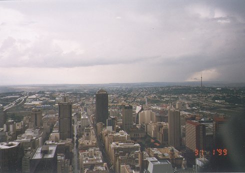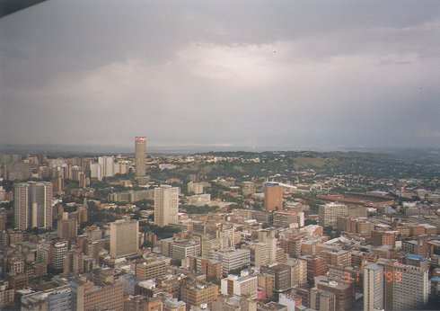 Wir checkten aus und starteten morgens zu unserer Stadtrundfahrt. Wir bekamen die kleine Tour (Johannesburg) zum Preis der großen Tour (Johannesburg und Soweto). Als wir im Auto saßen begann es fürchterlich zu regnen. Binnen Sekunden stand das Waser knöcheltief auf den Straßen. Es war quasi kein Durchkommen mehr. Unser Fremdenführer fuhr unbeirrt weiter. Der Regen ließ relativ schnell nach und so konnten wr auch etwas von Johannesburg sehen. Wir fuhren dann zum Top of Africa (ehemaliges Hilton Hotel) und sahen uns die Stadt von oben an. Die ganze Innestadt ist nach dem Ende der Apartheid langsam ausgestorben und die Gebäude, z.B. in den Bildern unten, sind jetzt fast alle leer!!!