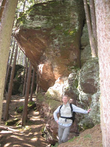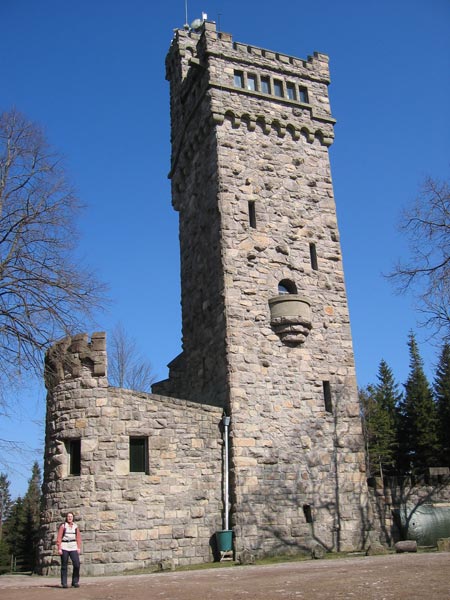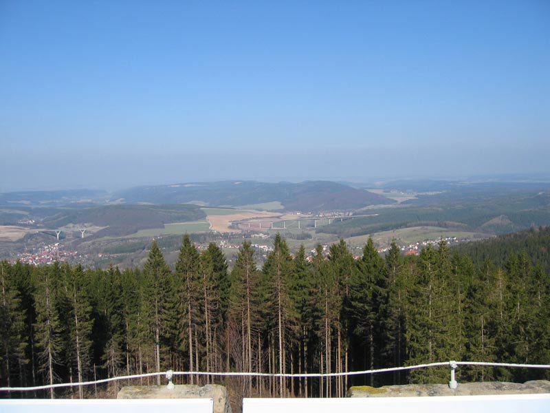 am ersten frühlingstag des jahres 2004 - zum eingewöhnen: eine 12 km wanderung rund um elgersburg panorama vom turm "hohe warte" blick vom turm, die elgersburg, ich unter einem felsvorsprung und der turm auf der "hohe warte" |