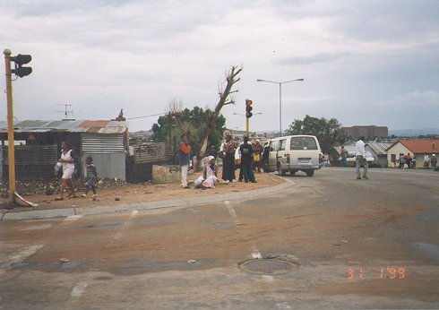 Der Fremdenführer wechselte (weiß -> schwarz) und wir fuhren nach Soweto. Früher war das hier ein riesiges Ghetto in dem die Schwarzen leben mußten, die in Johannesburg arbeiteten. Ich weiß auch nicht, wie ich es nennen soll: Ghetto oder Slums... irgendwo dazwischen.